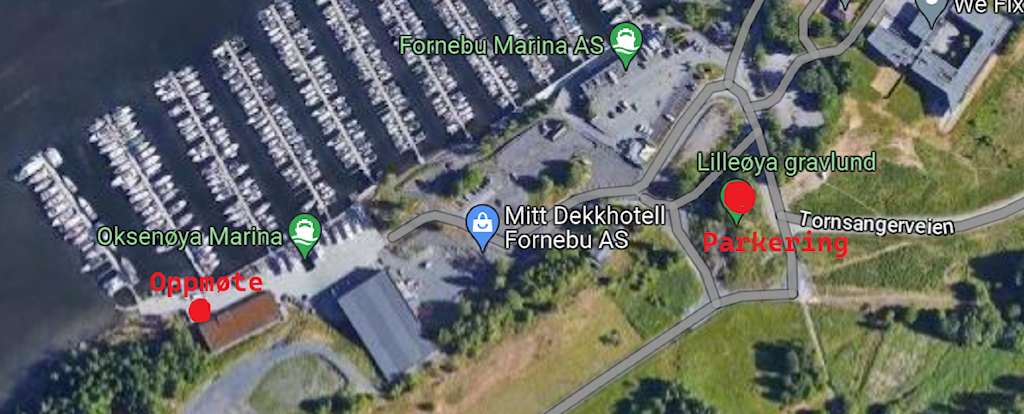 Følg skiltingen til Mitt Dekkhotell, og deretter videre til "Bull Aktiv" nede ved bryggen på Oksenøya Marina.