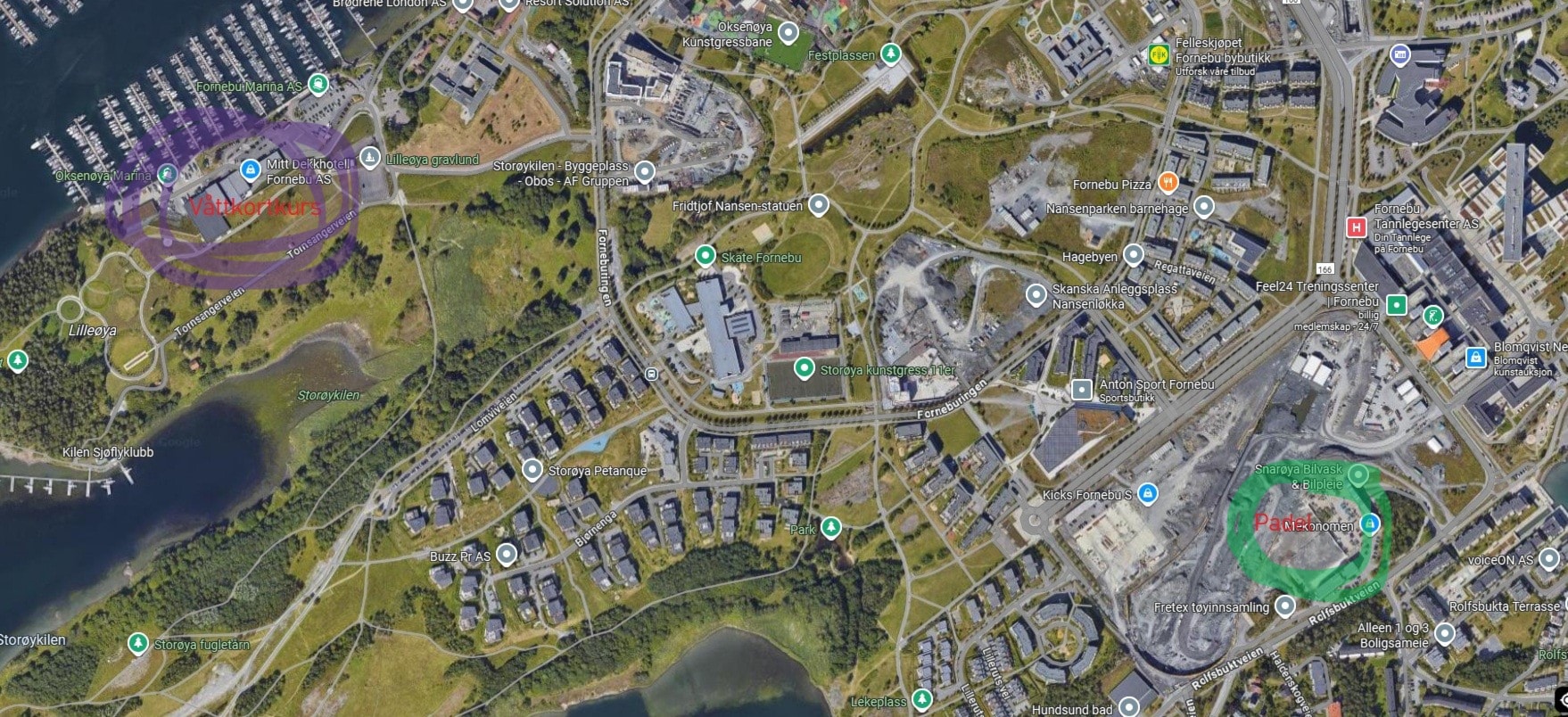 Lilla ring/Oksenøya (ca 20 minutters gange fra Fornebu S (kjøpesenter) og kollektiv transport)