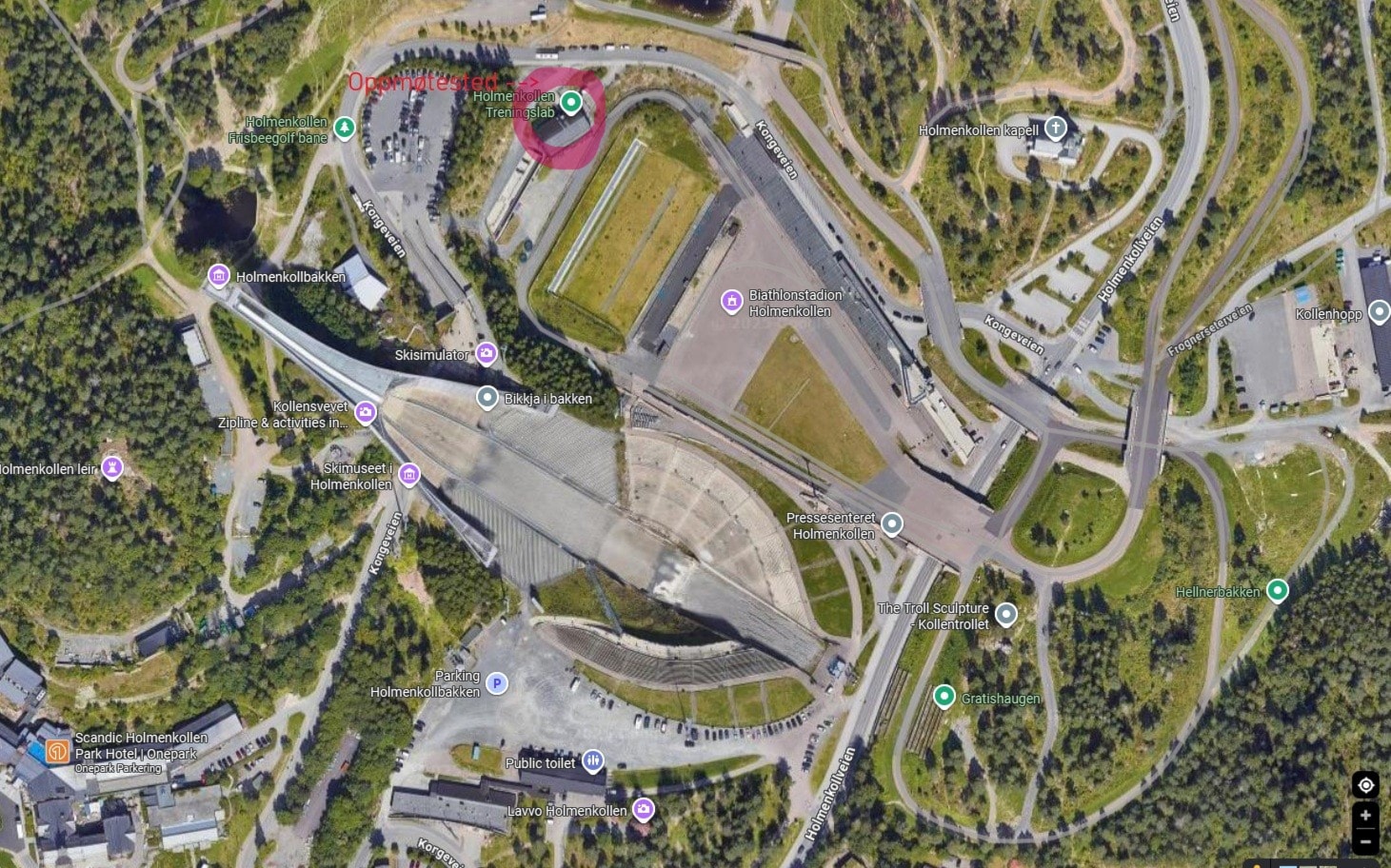 Søk opp "Bull Aktiv" i Google Maps for korrekt veibeskrivelse, da hele Holmenkollen nasjonalanlegg er registrert med adressen Kongeveien 5.