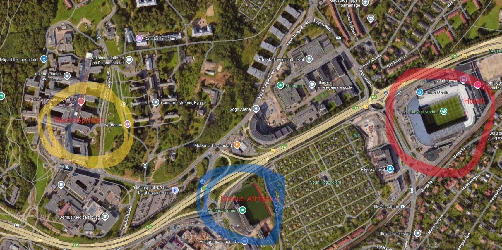 Gul ring/ Rikshospitalet (ca 15 minutters gange fra Ullevål Stadion):